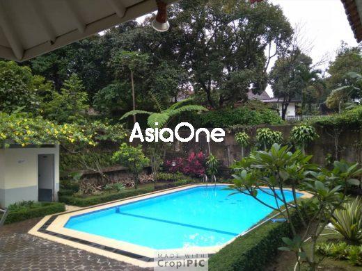 Ruang santai/ ruang keluarga, ruang tamu,dapur,carport halaman+ taman luas kolam renang