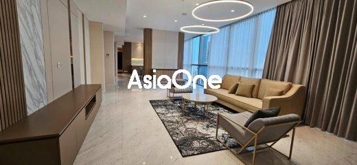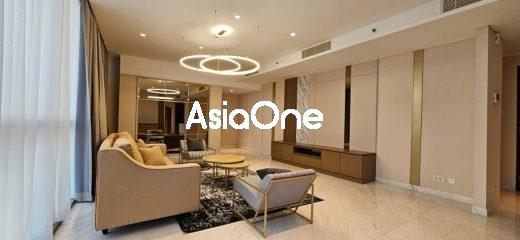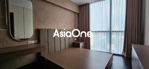 Unit C (combine unit 320 sqm) – Tower 2 (Domaine Prive), view Mega Kuningan, hadap Selatan, 3 bed, 1 study room, 4 bath, furnished, lantai 40an, harga sewa USD 5,500